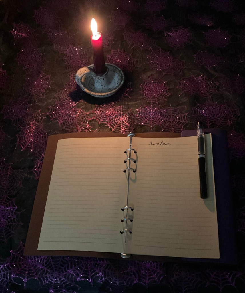 Samhain candle – red, orange, deep purple or black – lit at beginning