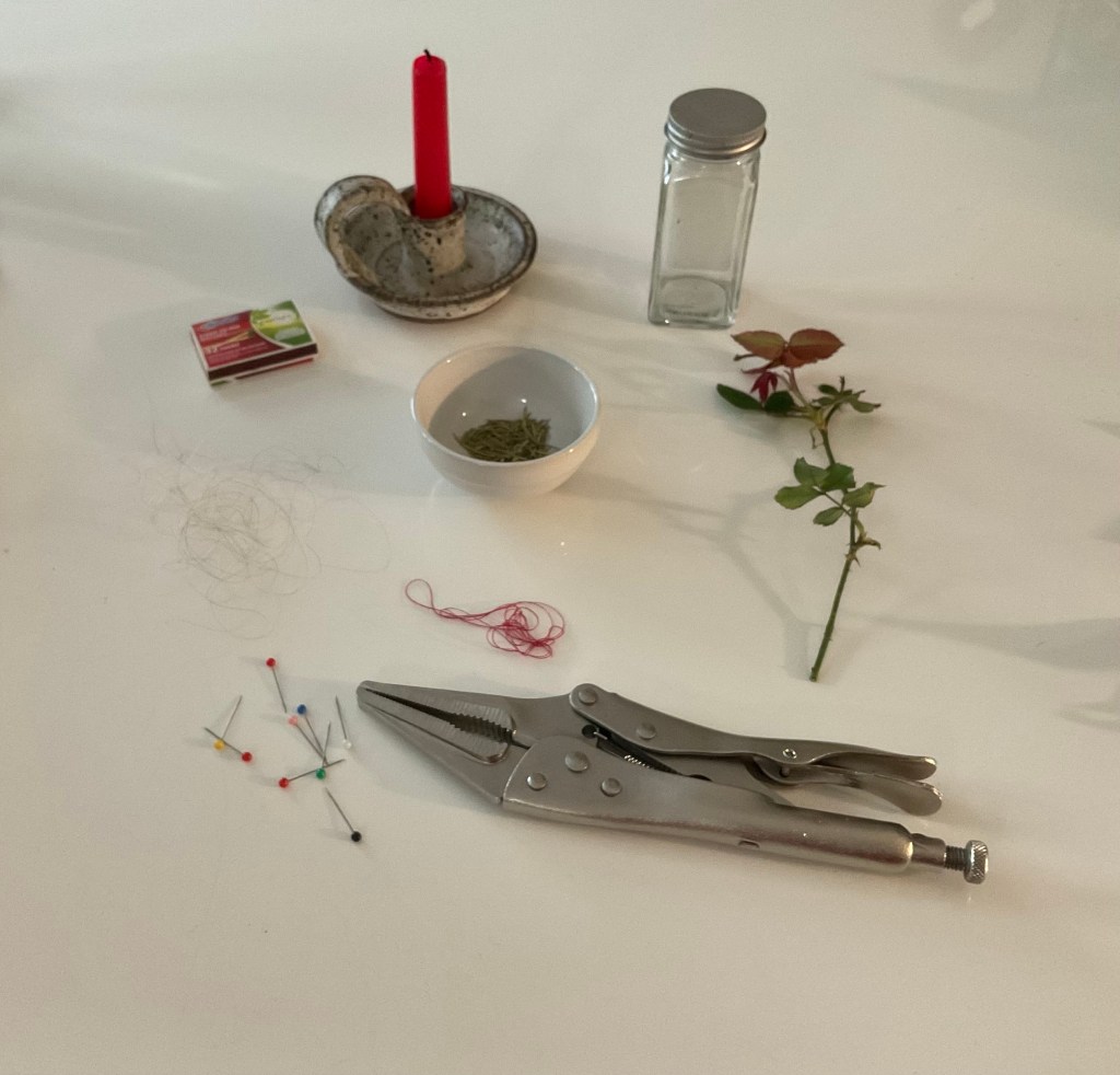 You can make make a bottle which is similar to that of a witches’ bottle. Put in herbs such as rosemary, bay and garlic. Add nine bent sewing pins. Be careful not to prick yourself while bending them. Add a tangle of red thread to confuse the curse. Add your fingernails, toenails and/or hair, which are lures for the curse. If available add a stem from a rose with thorns. Tell each ingredient what you want it to do as you add it to the bottle. Close the bottle and seal it with red or purple wax.