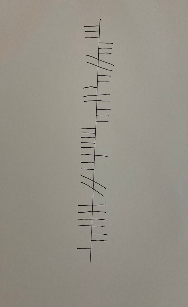The Ogam alphabet has 20 characters that are agreed upon by authors. There are 4 or 5 more special characters that authors do not agree upon. You may choose the author to go with when it comes to those special characters, if you decide to work with the Ogam. To create multiple characters marks are made along a single line. See picture below.